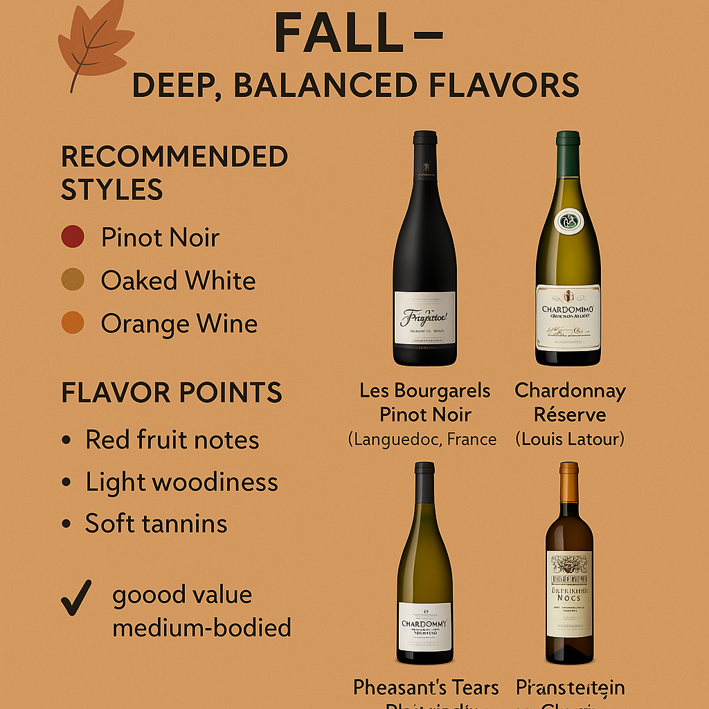 여름엔 산미! 겨울엔 바디! 계절별 와인 추천와인은 계절과 함께 즐길 때 더 깊은 매력을 보여줘요.날씨, 기온, 음식 분위기에 따라 어울리는 와인의 스타일과 바디감도 달라지죠.이번 포스팅에서는 사계절에 맞는 와인 스타일과 추천 와인까지 함께 소개할게요!🌸 봄 – 부드럽고 산뜻한 시작 꽃 피는 계절, 기분 좋은 산미와 은은한 향이 어울려요.추천 스타일: 로제 와인 / 가벼운 화이트 와인맛 포인트: 상큼한 과일향, 은은한 플로럴 향, 중간 이하의 바디감추천 와인:✅ Miraval Rosé (프랑스) – 자몽·장미향이 부드럽게 어우러짐✅ Villa Maria Sauvignon Blanc (뉴질랜드) – 봄날 산책 같은 시트러스 향☀️ 여름 – 시원하고 청량하게! 더운 날에는 산도 높은 와인과 살짝 차가운 스..